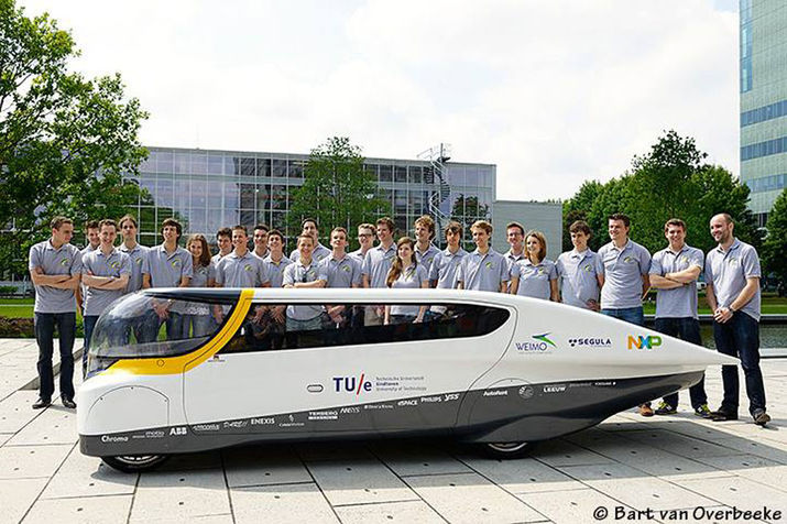 Från nederländska Solar Team Eindhoven kommer den här soldrivna bilen där man ska kunna sitta fyra personer.